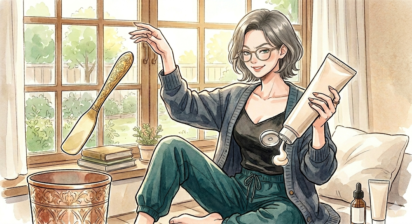 デパコスあるあるの「ガラス瓶+スパチュラ」。